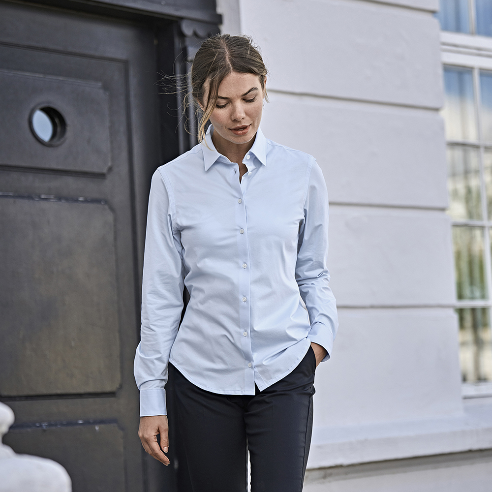 Skjorten er fugttransporterende, hurtigtørrende og nem at vaske og pleje. Bomuld/elastan-stoffet sikrer en yderst behagelig skjorte, der kan bæres til enhver lejlighed.
