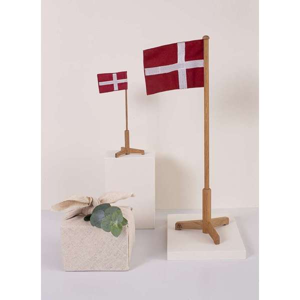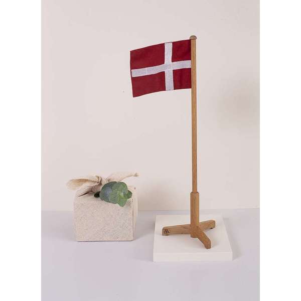 Dette festflag er fremstillet i FSC-certificeret eg og kombineret med et tekstilflag. Det sikrer både høj kvalitet og ansvarlig produktion.