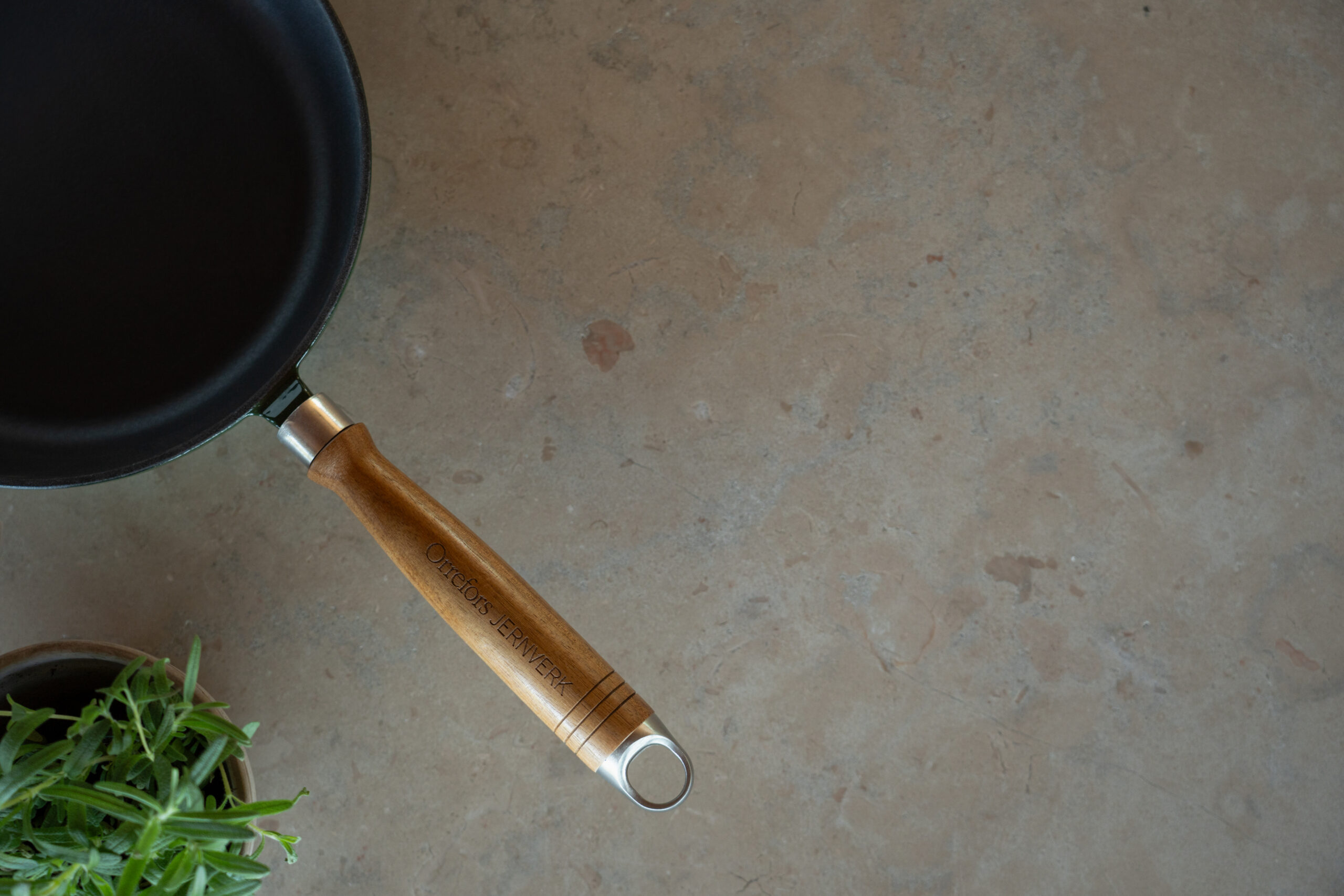 støbejernspande i køkkenet, og