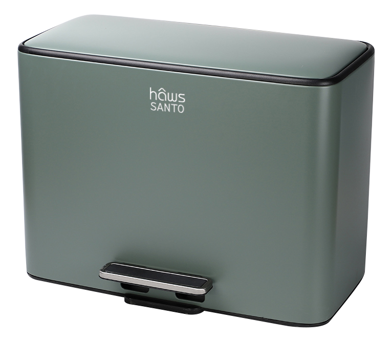 Denne elegante skraldespand i mat grøn er designet til at gøre din affaldssortering både nem og æstetisk.
