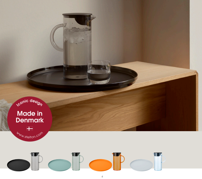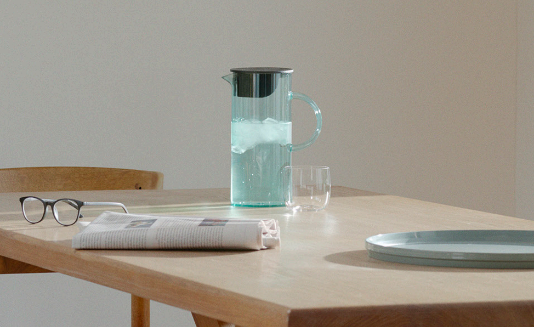 frisk juice og koldt vand og passer i køleskabet. Den
